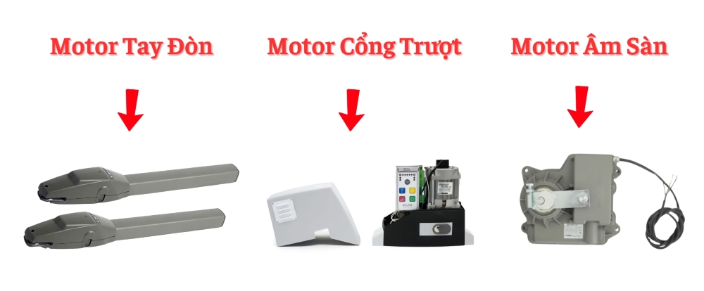 Có 3 loại động cơ cổng phổ biến, bao gồm: Cổng âm sàn, cổng tay đòn, cổng trượt tự động.